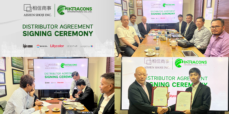 អបអរសាទរក្រុមហ៊ុន Intracons International Co., Ltd ដែលទទួលបានសិទ្ធិចែកចាយផ្តាច់មុខនូវផលិតផលពីក្រុមហ៊ុន AISHIN SHOJI INC. ដែលមានផលិតផលតុបតែងដូចជាផ្ទាំងរចនាជញ្ចាំង (Wallpaper) វាំងនន កំរាលព្រំ ការ៉ូប្រណិត និងស្រោមពូកនាំចូលពីប្រទេសជប៉ុន ដែលជាម៉ាកផលិតផលល្បីៗដូចជា Fujie textile, Sincol Group, Lilycolor, SENSTAR, Sangetsu សុទ្ធសឹងតែជាផលិតផលឈានមុខគេនៅប្រទេសជប៉ុន។